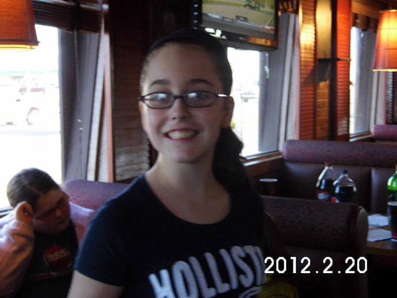 Tonight was Senior Night at our school. The whole school participated and got to play in the blue/white game. All the girls teams split into two teams (one blue/one white) as did the boys. Keep in mind that this was for ages K-12 which made it a really special event. Carlie and Makena got on the same team and they weren't on Pop and Bro. Jeff's team :( I got several pictures and I stole a few from Mom (you earned your Super Nanny status back!). But before all of that, we had a pizza party at Pizza Hut for the Pee Wee girls team.